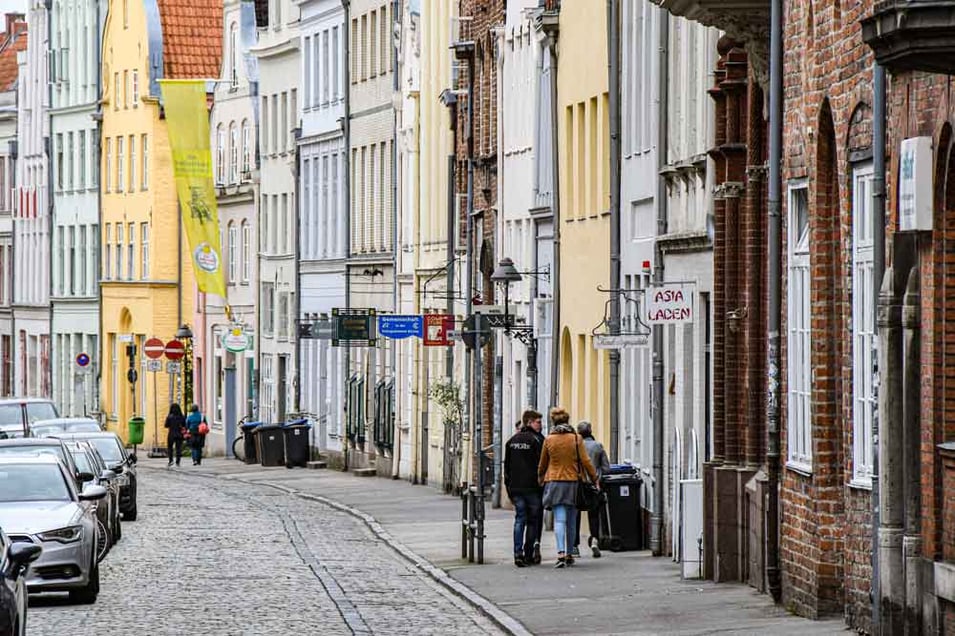 Lübeck: In der Flucht betrachtet, bilden die Fassadenteile mit ihren Fenstern senkrechte Muster aus.