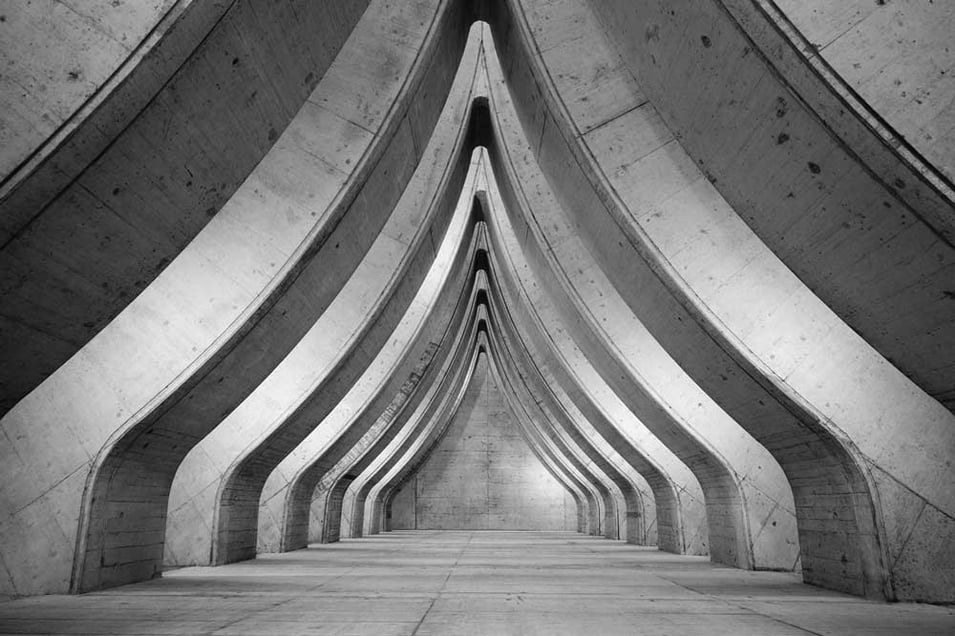Auch die moderne Architektur hat es mir bezüglich Mustern angetan. Mein Auge wird davon magisch angezogen. Es ist die lamellenartige Architektur, die meist vertikal in die Höhe schiesst und die von hohen Kontrasten lebt. Die Lamellen werden waagrecht durchzogen von den Etagen, die sich perspektivisch nach hinten verjüngen. Solche Fassaden sind besonders in Schwarz-Weiss attraktiv, da die Form betont wird und keine Farben davon ablenken. Strukturen treten auch als Schatten auf. Bei entsprechendem Blickwinkel kannst du perspektivische Wirkungen gestalten.