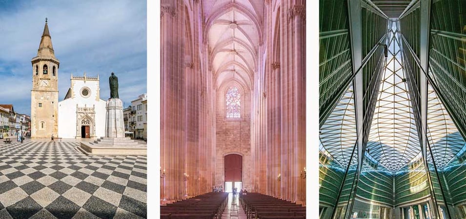 Von links: Tomar, Portugal; Mosteiro da Batalha, Portugal; Palazzo Lombardia, Mailand. Muster finden sich überall in der Architektur.